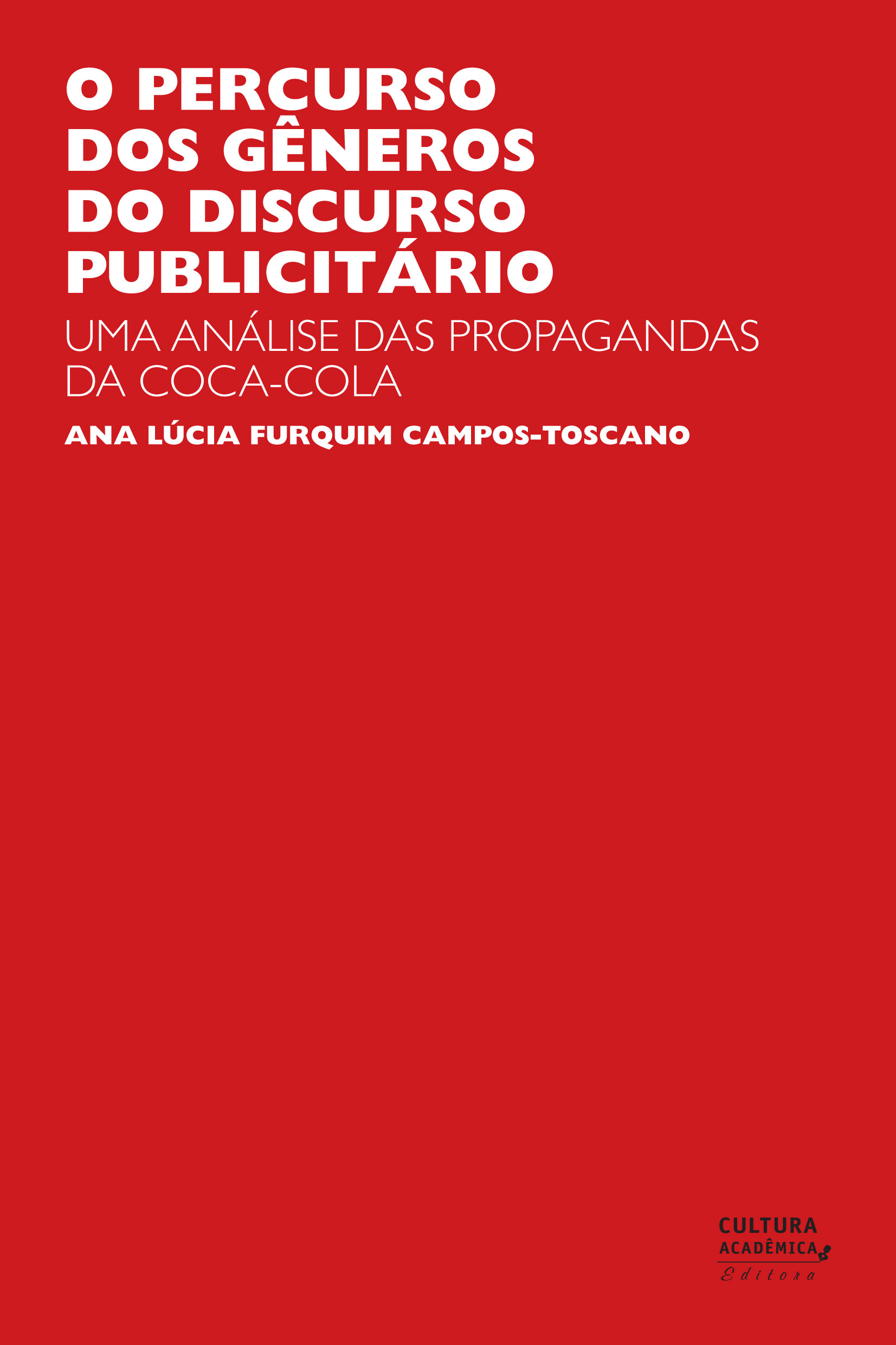 Além de oferece ao leitor uma reflexão sobre os discursos veiculados em diferentes mídias, o livro O percurso dos gêneros do discurso publicitário: uma análise das propagandas da Coca-Cola, lançamento do selo Cultura Acadêmica, resgata o percurso dos gêneros publicitários. A partir de análises das propagandas da Coca-Cola e de seus contradiscursos (antiamericanos, anticapitalistas, antiglobalização, da natureza e da saúde), a linguista Ana Lúcia Furquim Campos Toscano acompanha todo o trajeto da linguagem midiática, desde a inserção de seus anúncios na televisão, o emprego de efeitos especiais, a introdução dos recursos da informática e da interconexão com outras mídias, em especial, com a internet.
